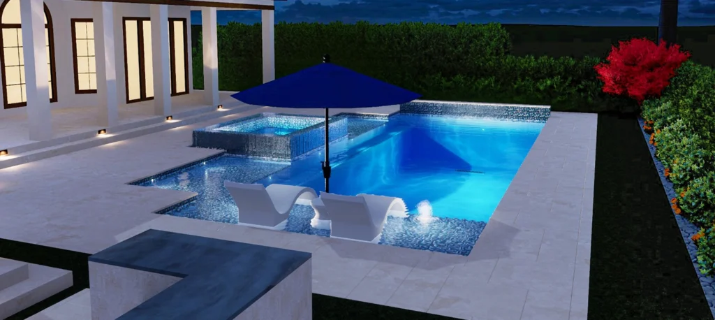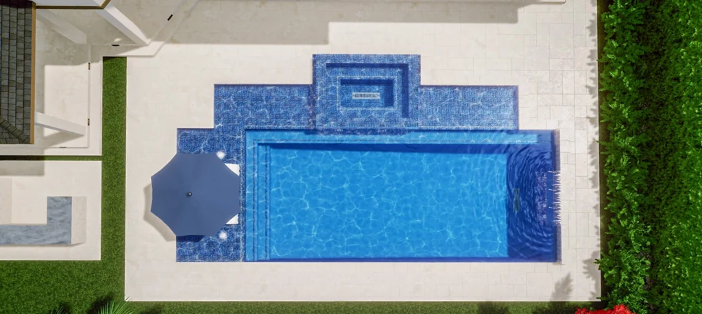 Paver: Coping – 24×24 Ivory Travertine / Deck – Syntetic Grass
